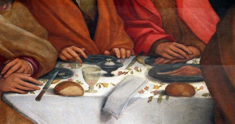 According to Peter Leithart, this eschatological feasting aspect of the Eucharist shows us the “way things really ought to be.” (1) When we participate in the Eucharist, we are, in some way, enacting the kingdom. It is a foretaste of the wedding supper of the Lamb (Rev 19:6–9) and a partial fulfilment of the meals in the Old Covenant when the people “ate with God.” Abraham ate with the Lord (Gen 18). The elders of Israel ate in God’s presence on Sinai (Ex 24) as did the people of Israel in certain sacrifices in the tabernacle and the temple (Lev 7:11–38). Isaiah prophesies that all people will come and feast on God’s holy mountain: