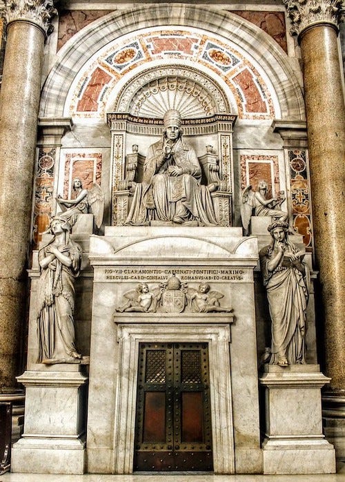 In an essay dating from 1898 Kuyper praised the memorial monument for Pope Pius VII (1831) by the Icelandic-Danish artist Bertel Thorvaldsen, which he had seen on one of his travels to St Peter’s Basilica in Rome. On this monument the pope is seated in the centre with an allegorical female figure on each side. The woman on his right is dressed in a lion’s skin, denoting fortitudo or divine power. She looks up, full of faith and emotion, her arms crossed over her heart. The other woman, flanked by an owl and with a book or Bible in her hand, represents sapientia or divine wisdom. She looks down pensively. Why would this work have had such an impact on Kuyper? Not just because Thorvaldsen, a Lutheran artist, had contributed to this Catholic bulwark, but certainly also because the two women unite feeling and reason, faith and power, wisdom and the Word, and an orientation towards both heaven and earth. The combination of all these elements played an important role in Kuyper’s own thinking.