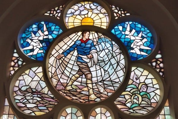 After the Doleantie there was a great demand for new church buildings. In the 50 years that followed approximately 400 Reformed churches were built. Starting from the idea about worship as a gathering of believers, Kuyper promoted the basic form of a half circle or amphitheatre, so that people could see each other and the minister. The pulpit, and thus the Word, took a central position. In contrast to what was customary before the formation of the new denomination, the pews for the dignitaries (the so-called “elders’ pews”) were left out, because all congregational members sit under the Word without distinction. In conformity with his teaching of sphere sovereignty Kuyper left the further execution to the architects. Over time a typical Reformed church building style developed from the hand of Reformed architects such as Tjeerd Kuipers, Egbert Reitsma and B. T. Boeyinga. Initially they followed the neo-styles of that era, later that of the Amsterdam School of Berlage c.s. The Wilhelmina Church in Dordrecht is a notable textbook case of Kuyper’s opinions. The window about the parable of the sower, pictured below, can be found in this church.