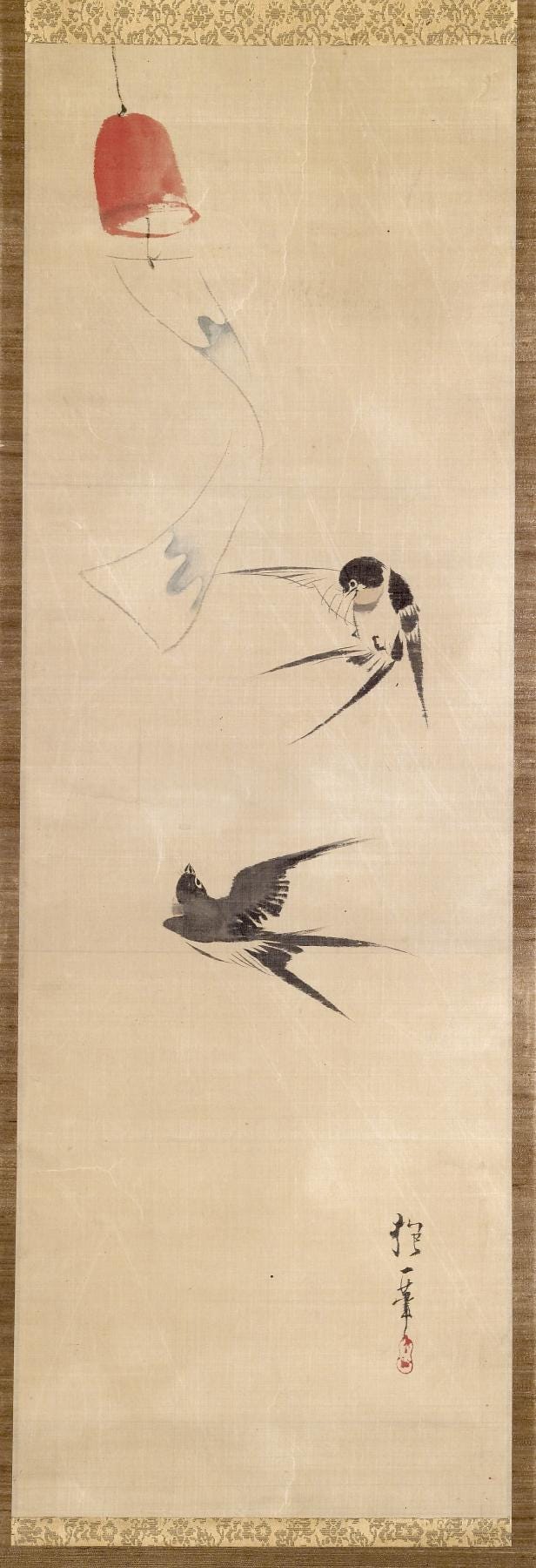 In the breeze whispering under the eaves