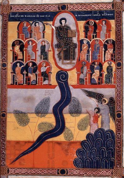 This Jewish hermeneutic evolved and flourished in the church as the Quadriga. Rabbinic interpreters recognized this and, in turn, borrowed the Quadriga from Christians, calling it Pardes (“Paradise”). This fourfold way of reading Scripture is displayed in Thomas Aquinas’s Catena Aurea (“golden chain”), a collection of glosses on the Gospels from Eastern and Western fathers. Aquinas insisted that the deeper senses of Scripture ought not to contradict the literal sense (sensus literalis). Another important work is Bonaventure’s The Tree of Life, which formed Franciscans in the way of the Gospels after their founder. His biography of Francis embodies the this-is-that hermeneutic. Ludolph of Saxony, a Carthusian monk, wrote The Life of Jesus Christ, which invited readers to enter imaginatively into the Gospel scenes. Milton T. Walsh is currently translating the volumes into English (Collegeville, MN: Liturgical Press). The work inspired Ignatius of Loyola’s Spiritual Exercises that formed Jesuit missionaries and was considered mandatory reading by Teresa of Ávila. The Quadriga enters English literature in the commentaries of Richard Rolle. John DelHousaye’s The Fourfold Gospel: A Formational Commentary on Matthew, Mark, Luke, and John (Eugene, OR: Pickwick, 2020, 2021) may be the first commentary to employ the Quadriga (Pardes) in over 500 years.