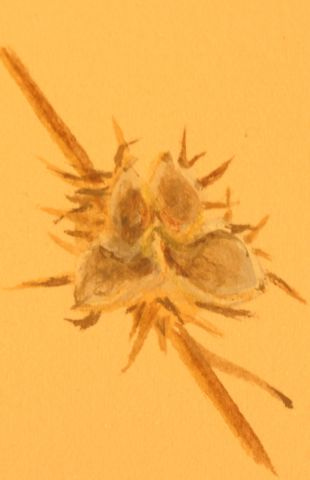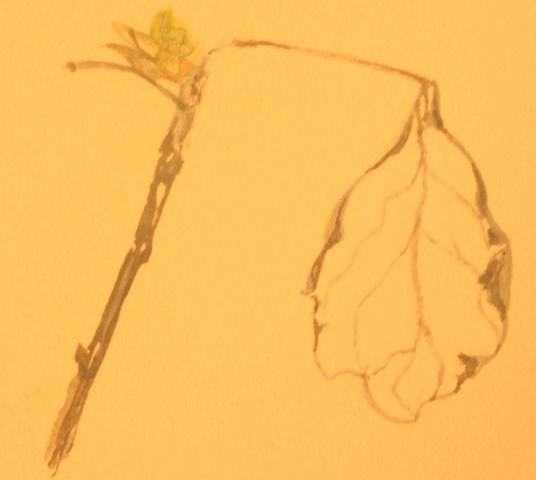 At times I would sit outside, watercolours in hand, and paint a little something that caught my attention – this leaf, that seed pod, a stone. These were moments of absorption – intent as I was on trying to render faithfully what I saw, while responding emotionally to the entrancement of what I saw, the marvel therein. Caught up again in a focus on this Something beyond myself, yet somehow quietly part of it, sitting there in that golden field, or amongst the many fallen leaves and twigs as I painted the newness of the spring growth from last year’s stem of the poplar twig.