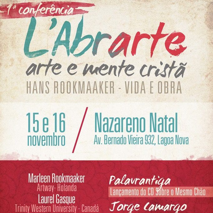It was a rainy evening in Sabará, Brazil, in the year of 2010. At a historical theatre created in 1819 by the second Brazilian emperor, Dom Pedro II, hundreds of young Brazilians cry out to the band Palavrantiga, performing at the venue, for its most popular song, Rookmaaker. As the band answers the audience’s cry, a choir of animated Brazilian Christians jump threateningly at the fragile historical venue and sing out loud the song’s main verse: “Eu leio Rookmaaker, você Jean-Paul Sartre” (I read Rookmaaker, you Jean-Paul Sartre). The context of the presentation was an art festival (Art in Focus), gathering Christians of a wide denominational range, from many parts of the country, which included in its schedule serious reflections on the arts and their relationship with the Christian faith and an expected book launch of the Portuguese version of Art Needs no Justification, by Hans Rookmaaker.